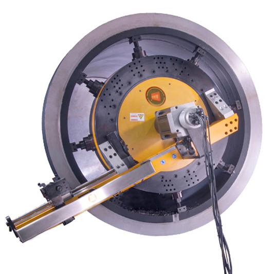 SSYI內(nèi)漲式全數(shù)控法蘭加工中心,是內(nèi)漲式法蘭端面加工機的增強型,針對法蘭面和管道端面復(fù)合型坡口而設(shè)計,采用伺服電機驅(qū)動,澳太獨創(chuàng)數(shù)控系統(tǒng),實現(xiàn)軸向和徑向聯(lián)動進(jìn)給加工,刀具加工軌跡通過數(shù)控編程控制,讓野外現(xiàn)場的法蘭和管道復(fù)雜型維修及施工變得更容易